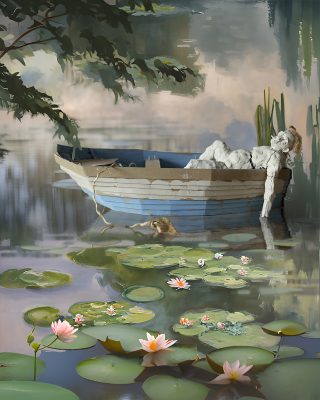 ‘Recently, I’ve been playing around with the 3-D objects and various backdrops in Photoshop and Ai, working out compositional permutations, and seeing how Artificial Intelligence interprets my own work and ideas. The latter exercise involves going through a process of visual and textual prompts, reiterations and responses, as though negotiating with a machine, until I arrive at something compelling. The reasoning behind this is to create visual ideas to act as springboards for other paintings and collages etc, and never as ends in themselves, but probably the truth lies closer to them being distractions; something to entertain myself.’